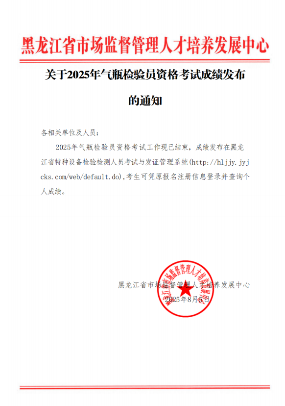 关于2025年气瓶检验员资格考试成绩发布的通知