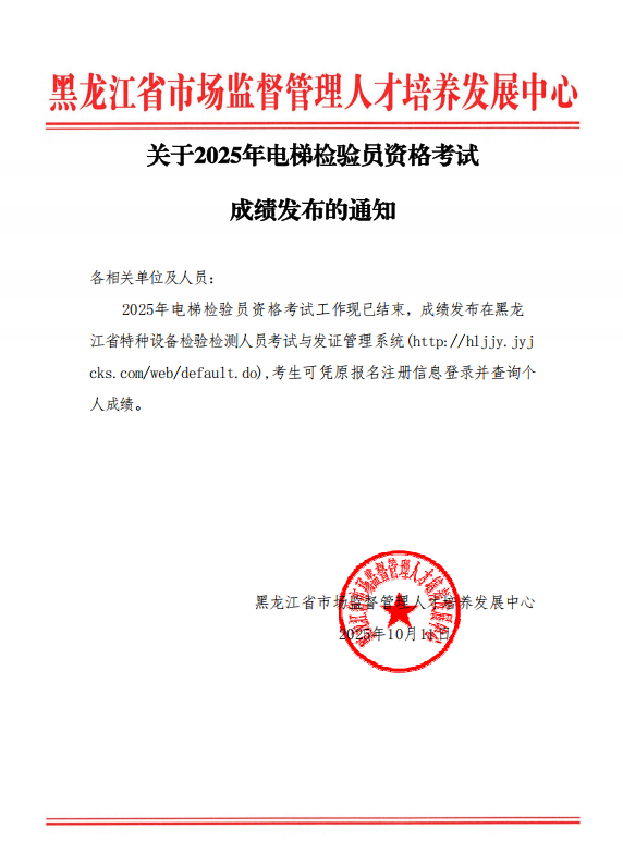 关于2025年电梯检验员资格考试成绩发布的通知