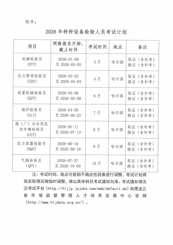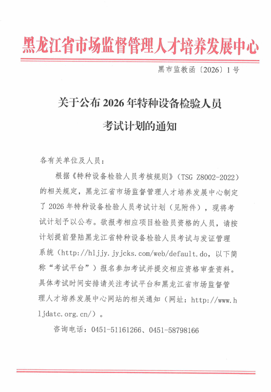 关于公布2026年特种设备检验人员考试计划的通知