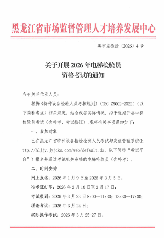 关于开展2026年电梯检验员资格考试的通知